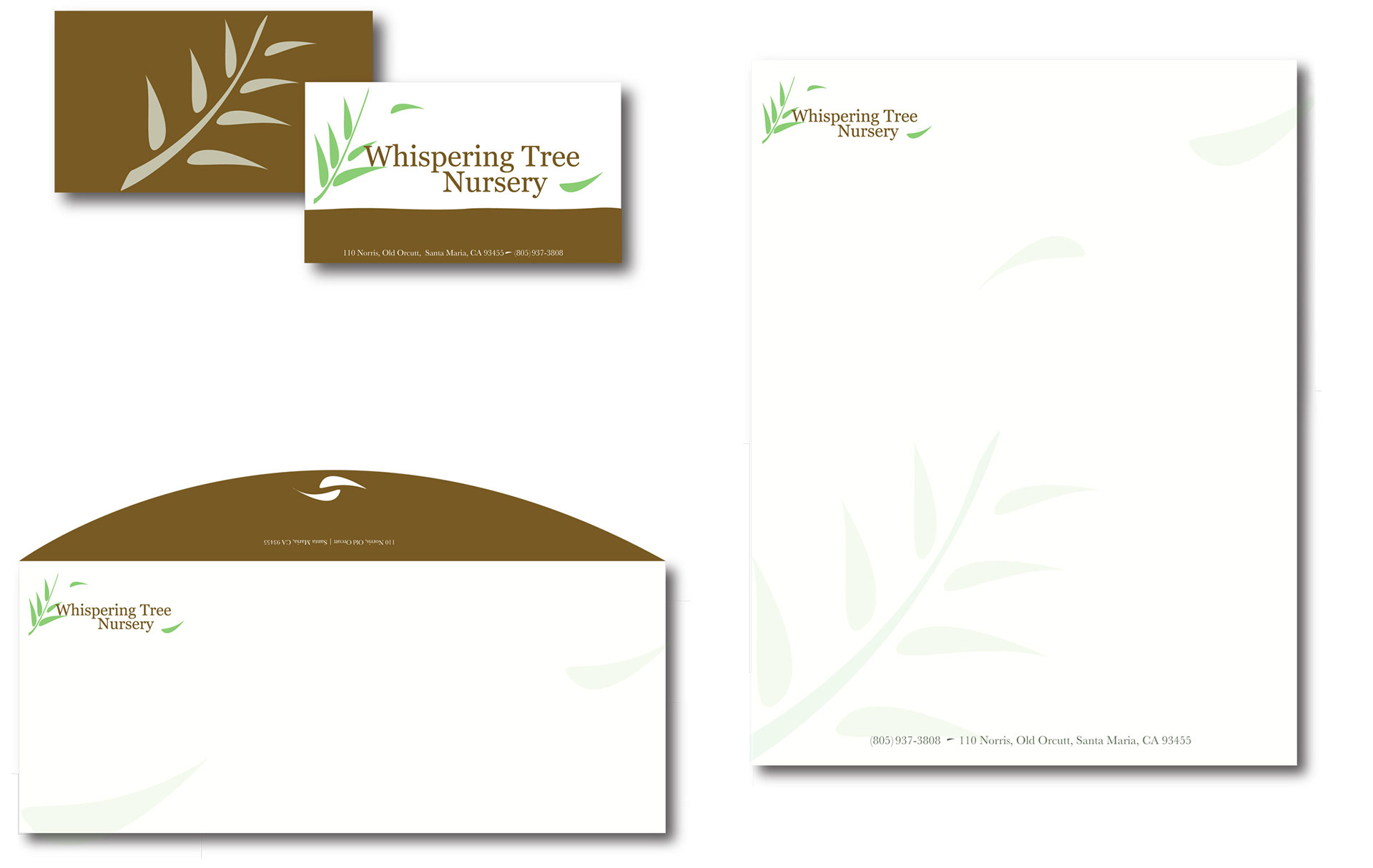 I rebranded the Whispering Tree Nursery by creating a new logo, and stationary to illustrate the hushed voices of the wind.